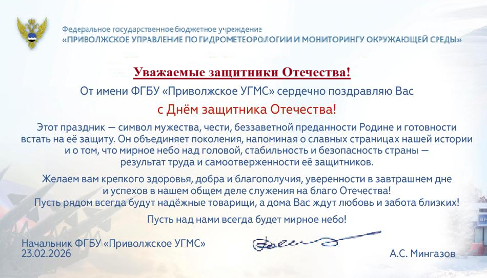 Новости Страница 1 из 219 Далее Погодное предупреждение по Самарской области 3 марта 2026 г. 17:22 Самарская область Погода первой недели марта на Средней Волге. 2 марта 2026 г. 15:59 ФГБУ "Приволжское УГМС" Теплое начало марта 27 февраля 2026 г. 15:37 ФГБУ "Приволжское УГМС" Прогноз погоды на март 2026 года по территории ФГБУ "Приволжское УГМС" 26 февраля 2026 г. 18:11 ФГБУ "Приволжское УГМС" Поздравляем с Днём Защитника Отечества! 23 февраля 2026 г. 15:00 ФГБУ "Приволжское УГМС" Погода последних дней зимы. 23 февраля 2026 г. 13:41 ФГБУ "Приволжское УГМС" Погода выходных дней 20 февраля 2026 г. 12:58 ФГБУ "Приволжское УГМС" Погода 17-20 февраля 2026 года 16 февраля 2026 г. 15:12 ФГБУ "Приволжское УГМС" Погода меняет характер 13 февраля 2026 г. 14:50 ФГБУ "Приволжское УГМС" Погода 10-13 февраля 2026 года 9 февраля 2026 г. 14:59 ФГБУ "Приволжское УГМС" Страница 1 из 219 Далее Всего новостей: 6674